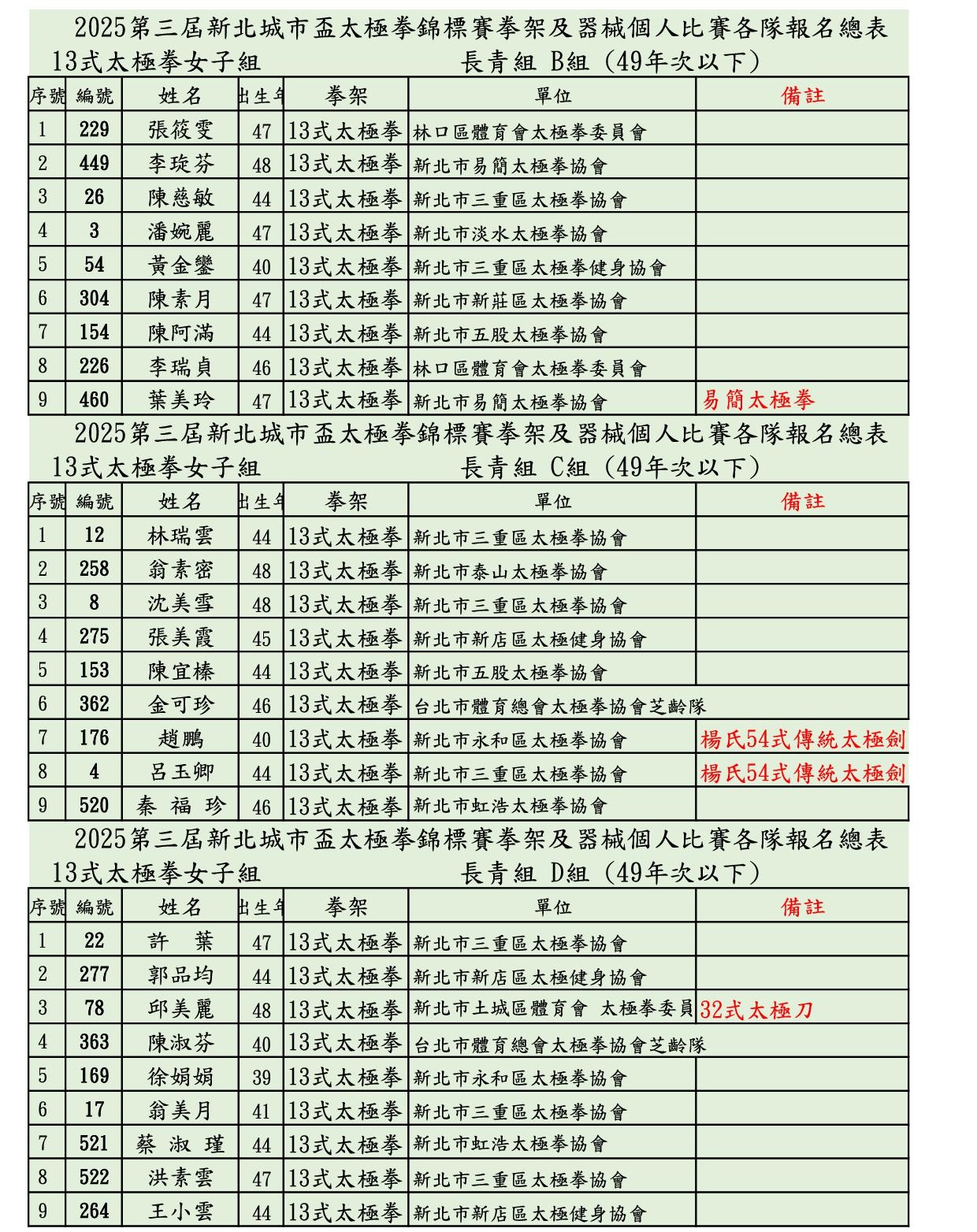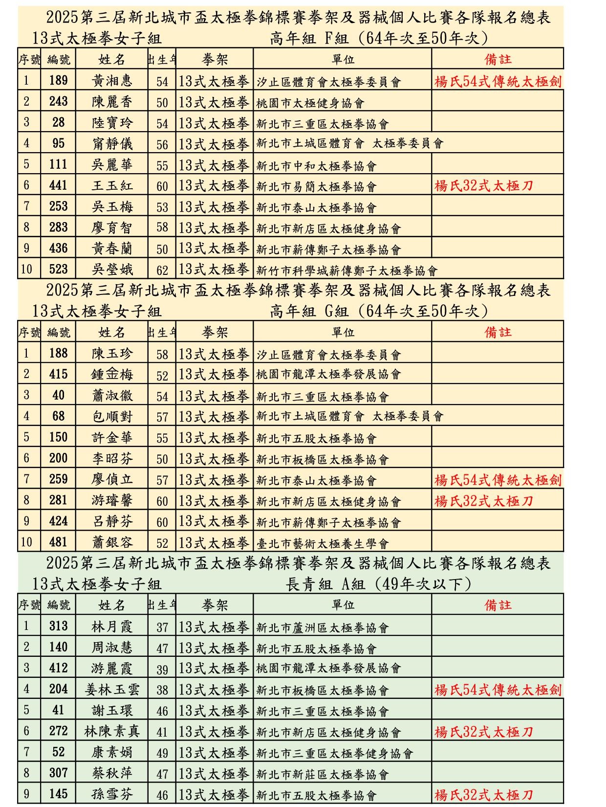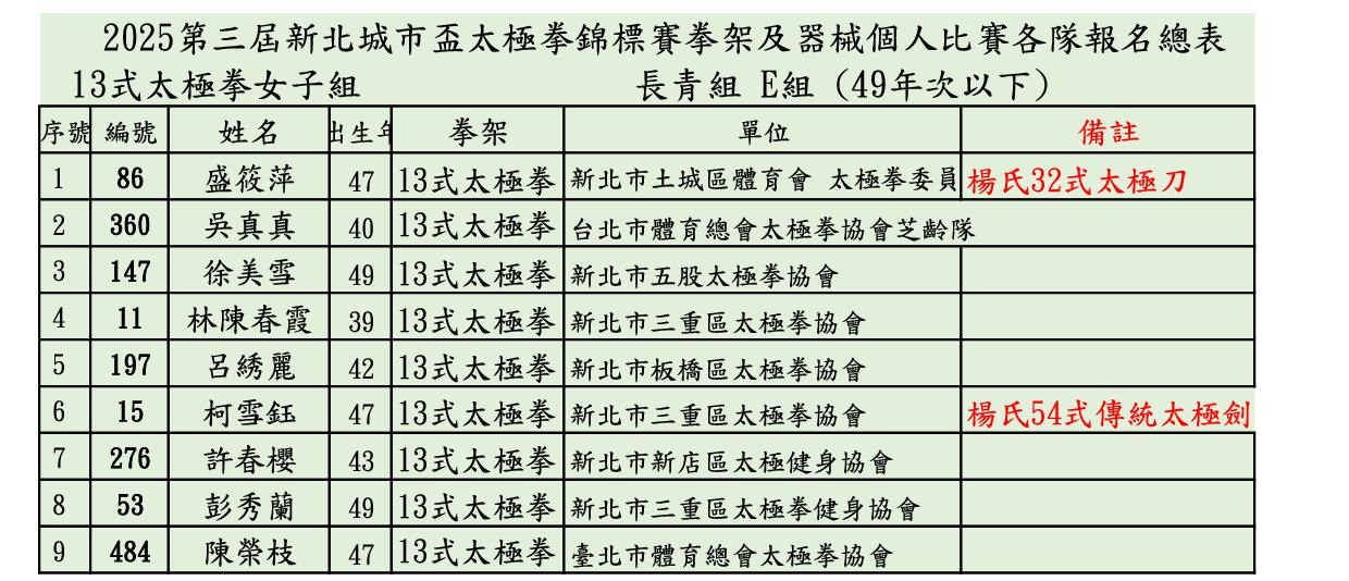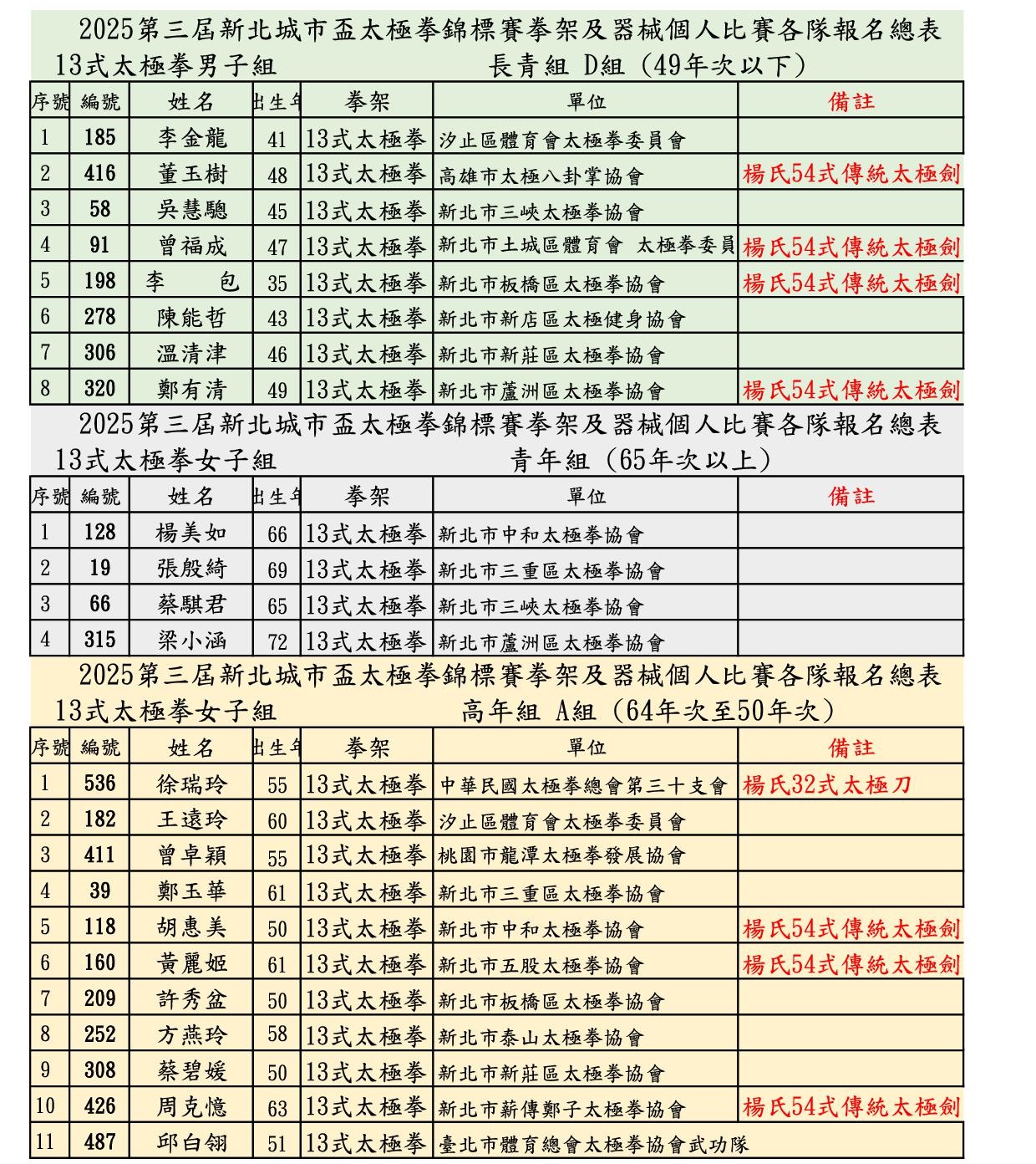 新北市太極拳總會第十三屆理監事名錄、秘書處名錄(110.3.10更新)