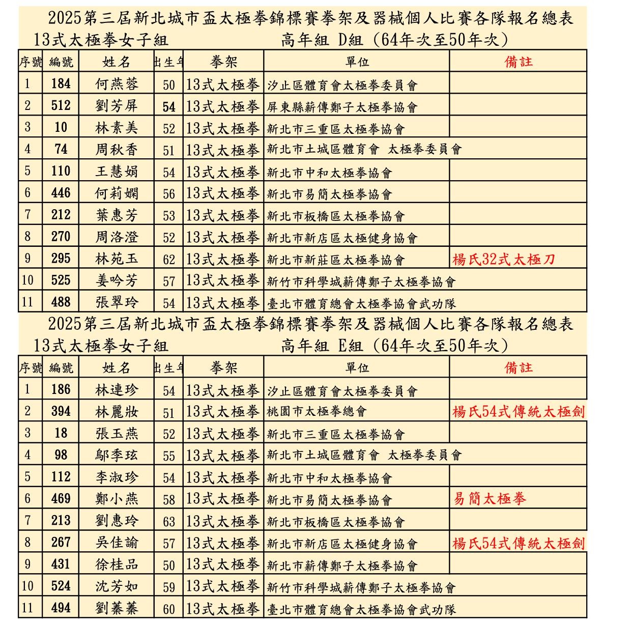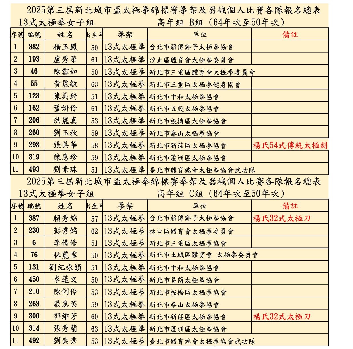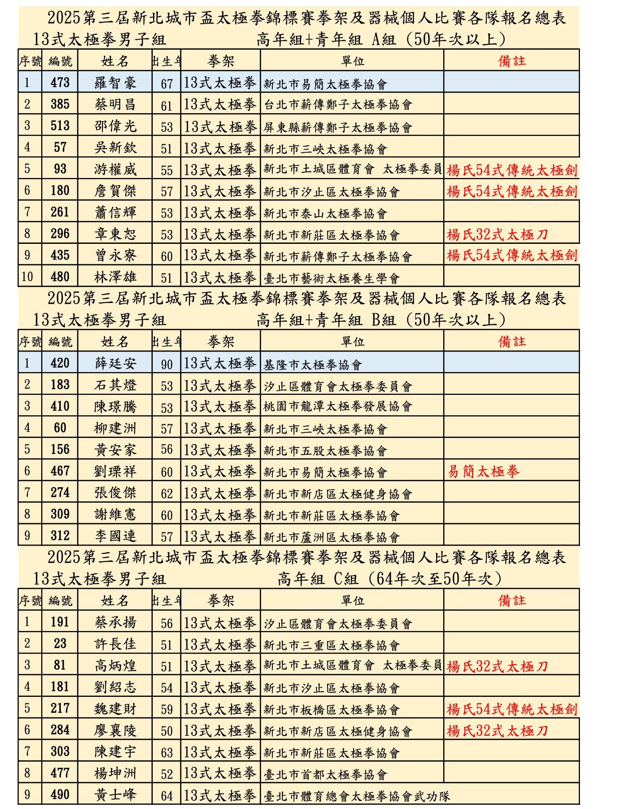 新北市太極拳總會第十三屆理監事名錄、秘書處名錄(110.3.10更新)
