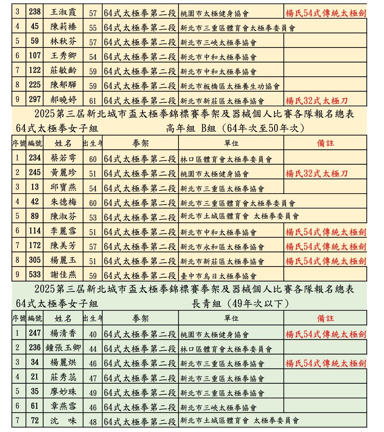 114 年城市盃 公告 分組總表 – 64式